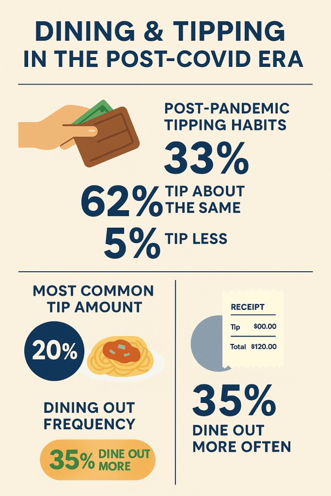 - 33% of Americans say they tip more now than they did before the pandemic.