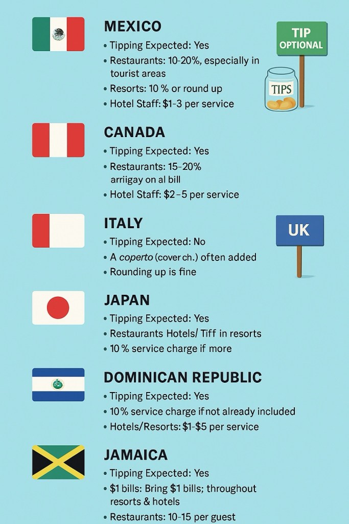 Many U.S. travelers carry their tipping habits overseas—leaving 20% tips in countries where it’s unnecessary or even awkward. But tipping norms around the world differ greatly. In some places, tipping is welcome. In others, it’s included—or considered unnecessary. Here’s what to expect in the most popular international travel spots for Americans.